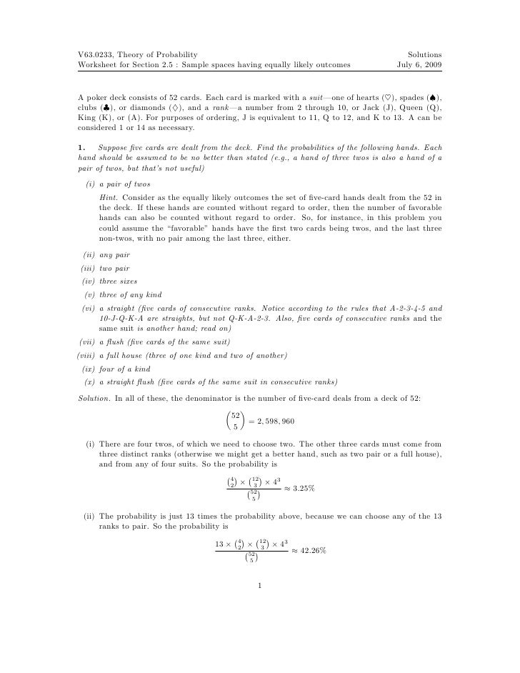 Probability With A Deck Of Cards Worksheet Answers from img.yumpu.com Probability theory worksheet 1 key. Other common distributions are uniform, binomial, geometric, poisson, weibull, and a menagerie of others. In this probability worksheet, students complete probability word problems involving odd and even numbers, dice, decks of cards, and more. Show that the probability of an even number of heads in n tosses of a fair coin is always 1/2. What is the probability of choosing a king from a standard deck of playing cards? Choose a worksheet or answer key below. Worksheets are probability, 7 th statistics probability, probability theory work 1 key, 8th grade, probability, statistics, 6th grade lesson plan probably probability, experimental probability work show your work. With this exercise, your child will practice using fractions to express probability.