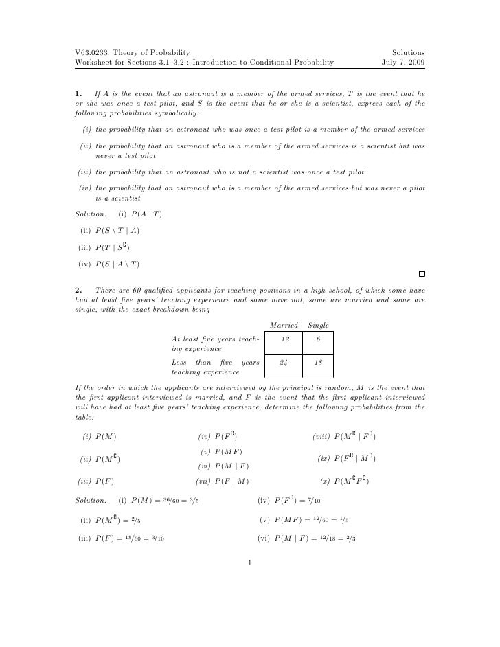 Probability Theory Worksheet 1 : Conditional Probability Worksheet Answers / Formal probability theory is a rich and sophisticated field of mathematics with a reputation for being confusing, if not outright impenetrable.
